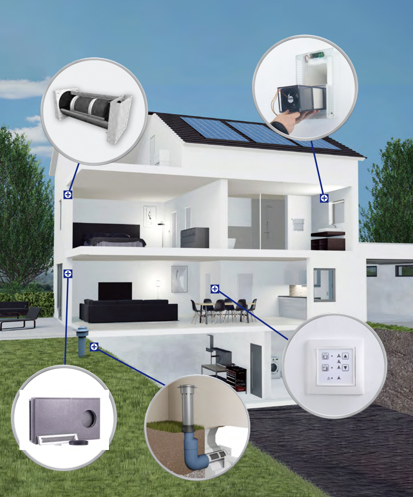 Zu einem sind das Kompaktlüfter vom Typ AIRUNIT SOLUS 2.0 + 2.0 SE für Wohnräume, sowie der Typ GEMMINI für Bad/WC + Küche. Ebenfalls im Programm ist ein Laibungselement passend zu den Lüfter Solus 2.0 + 2.0 SE. Die emcal-Ingenieure unterstützen dabei das Fachhandwerk von der Vorplanung bis zur Ausführung.
