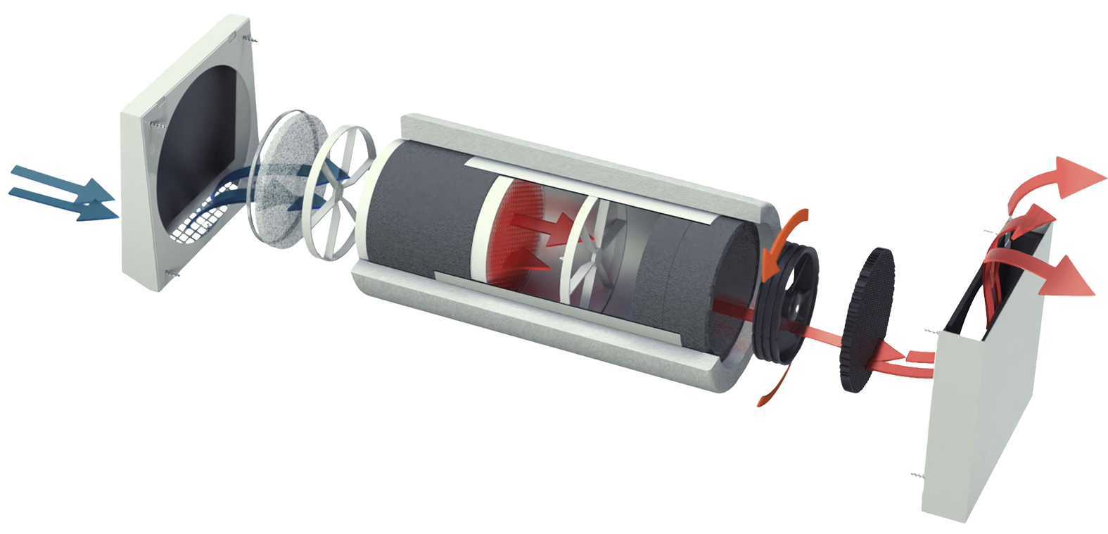 Die AIRUNIT-Wohnraumlüftungssysteme mit Wärmerückgewinnung arbeiten nach dem Push-Pull-Prinzip, bei dem der Ventilator in regelmäßigen Intervallen die Drehrichtung ändert und den Wärmetauscher mit Zu- oder Abluft belädt bzw. entlädt. AIRUNIT-Systeme eignen sich ideal für Neubauten und Nachrüstungen. Sie bieten intelligente Steuerung, hohen Wohnkomfort und bis zu 99% Wärmerückgewinnung. Die Lüftungssysteme sind so leise, dass sie den Schlaf nicht stören. Außerdem lassen sie sich flexibel an die Raumgröße und Luftbedarf anpassen.